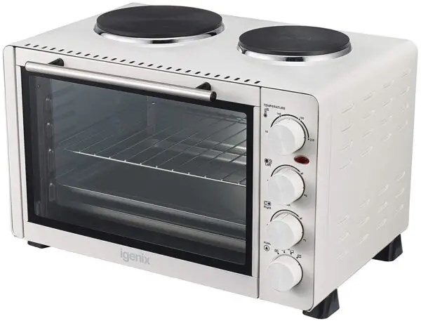 - LARGE 32L CAPACITY- This model includes a large internal heating element and two hot plates, one larger (1000W) and one smaller (600W) which can be used for a variety of food preperation.